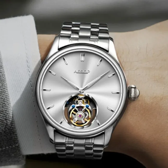 Be the first to review “AESOP Flying Tourbillon Mechanical Watch For Men Sapphire Waterproof Manual Tourbillon Mens Skeleton Watch Luxury Steel Strap A” Cancel reply
