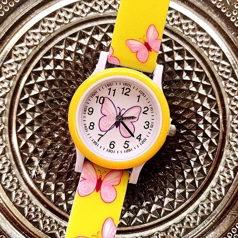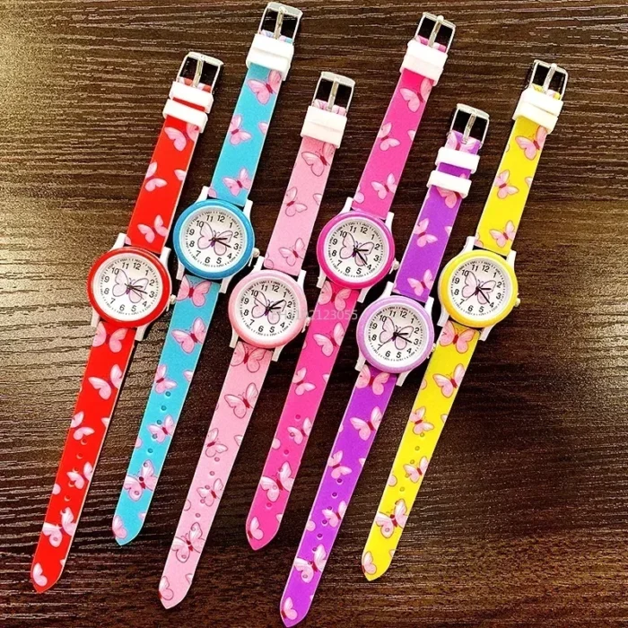 New Fashion Girls Watches Print Butterfly Cartoon Watch for Kids Silicone Strap Quartz Watch Childrens Cute Wristwatch Clock
