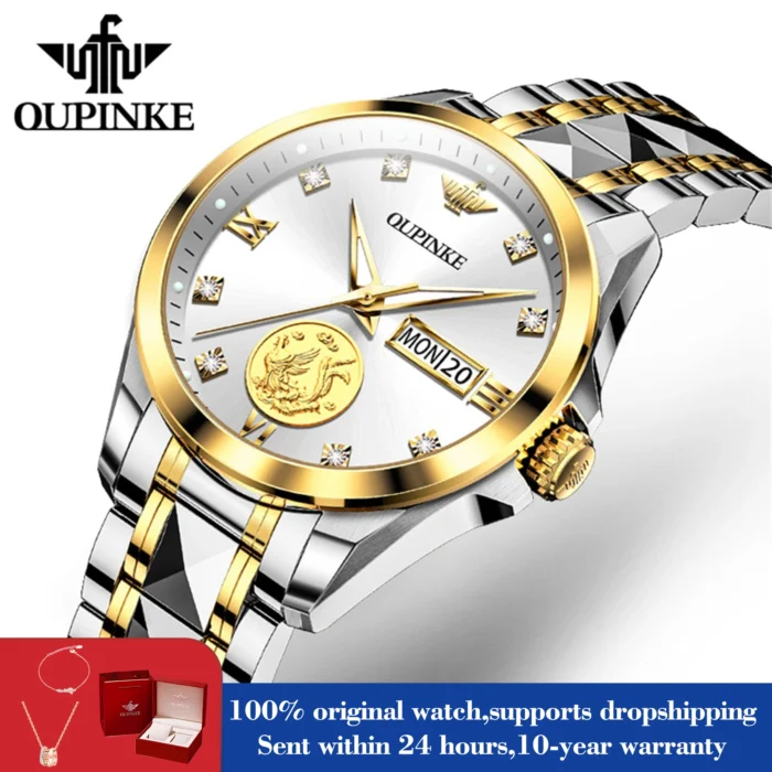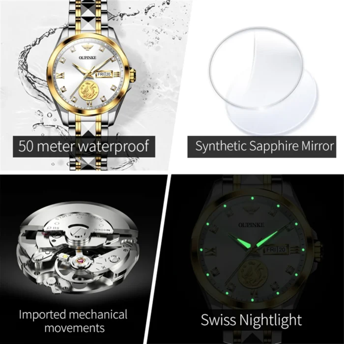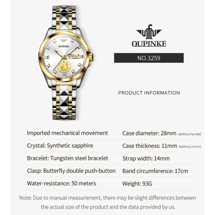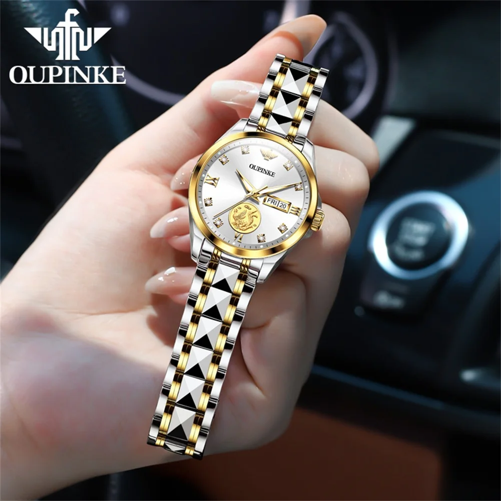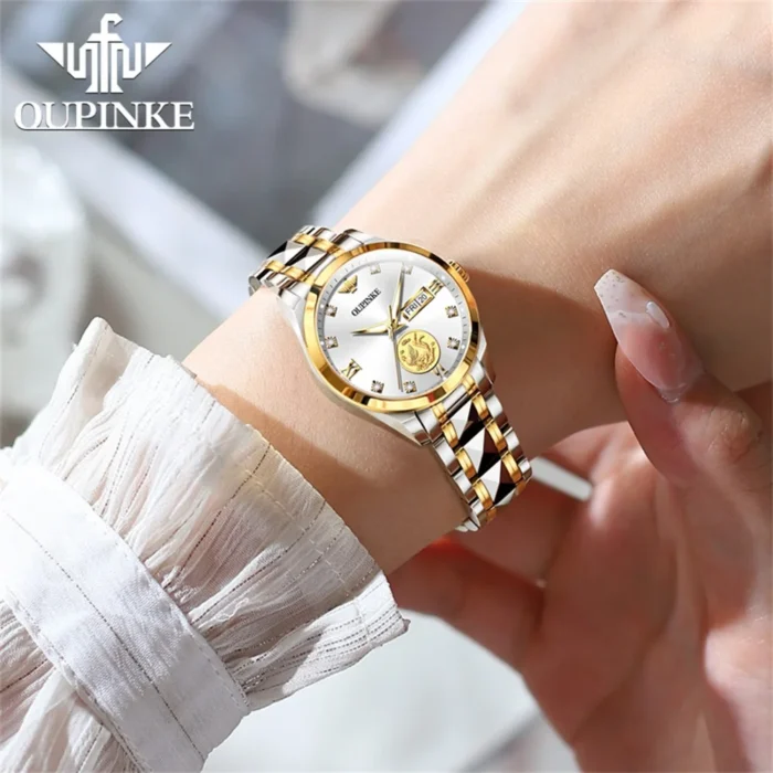 OUPINKE 3259 Luxury Elegant Women’s Mechanical Watches Real Gold Automatic Watch For Women Dual Calendar Ladies Dress Hand Clock