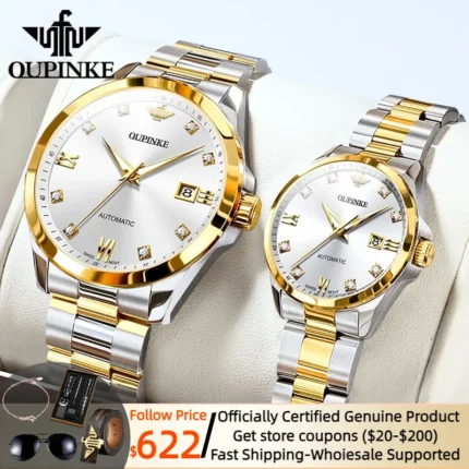 OUPINKE Couple Watches for Men Women Real Diamonds Swiss Movement Sapphire Mirror TOP Luxury Automatic Couple Watches Pair Set
